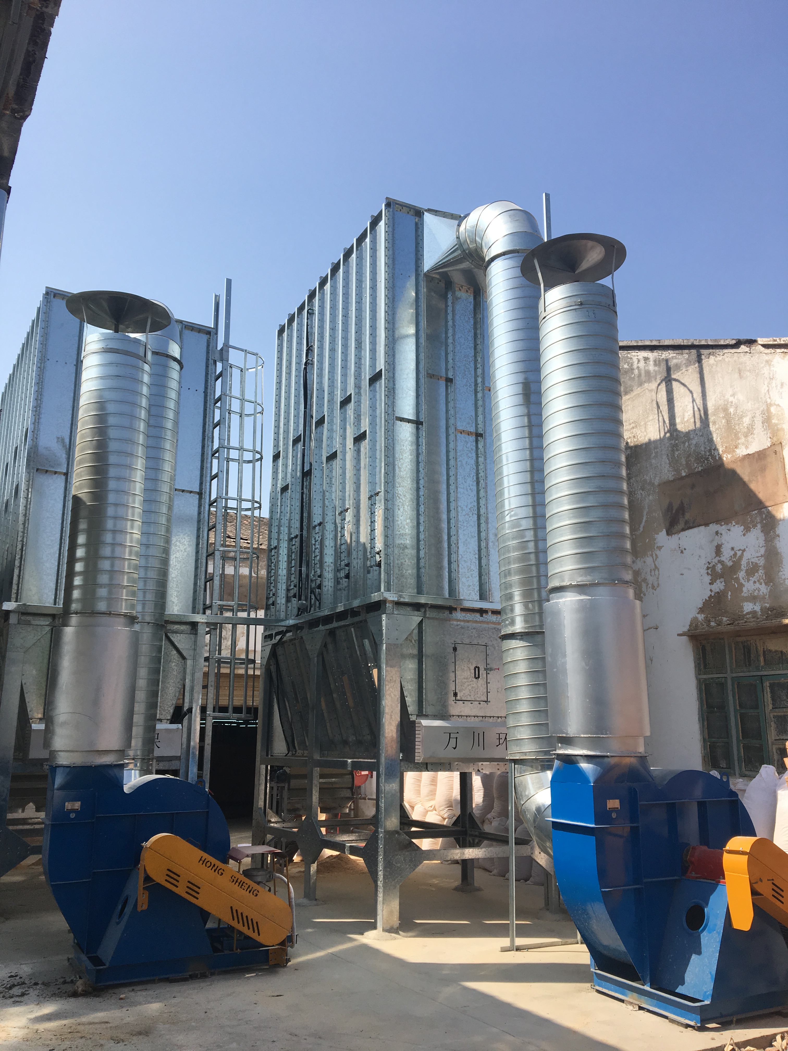 根據車間設備布置情況,由于木工機械吸塵口所需的風量及風壓風速要達到要求,并預留一些風量,因此我們采用過濾能力較強脈沖袋式除塵器,匹配相應的排塵風機,達到最佳吸塵效果。