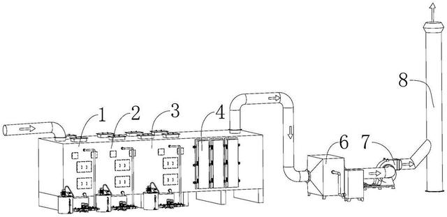 印刷廢氣處理工藝流程:印刷廢氣風管收集→引風機→活性炭箱吸附/脫附→高溫爐燃燒→排氣達標高空排放