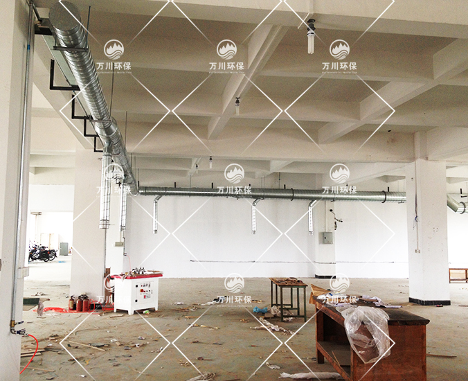 在木工車間開料、刨花、裁剪工序中會產生大量粉塵,為此正碩公司負責人向本公司采購一套中央系統系統。東莞市萬川環保工程有限公司本著如下設計原則: