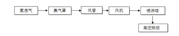 根據(jù)廠方提供的資料及現(xiàn)場勘察的情況,我司可以確定該廠的廢氣為“氨氣”。根據(jù)該廢氣的性質,萬川環(huán)保決定為該廠選定設備為--噴淋塔。(工藝簡圖如下)